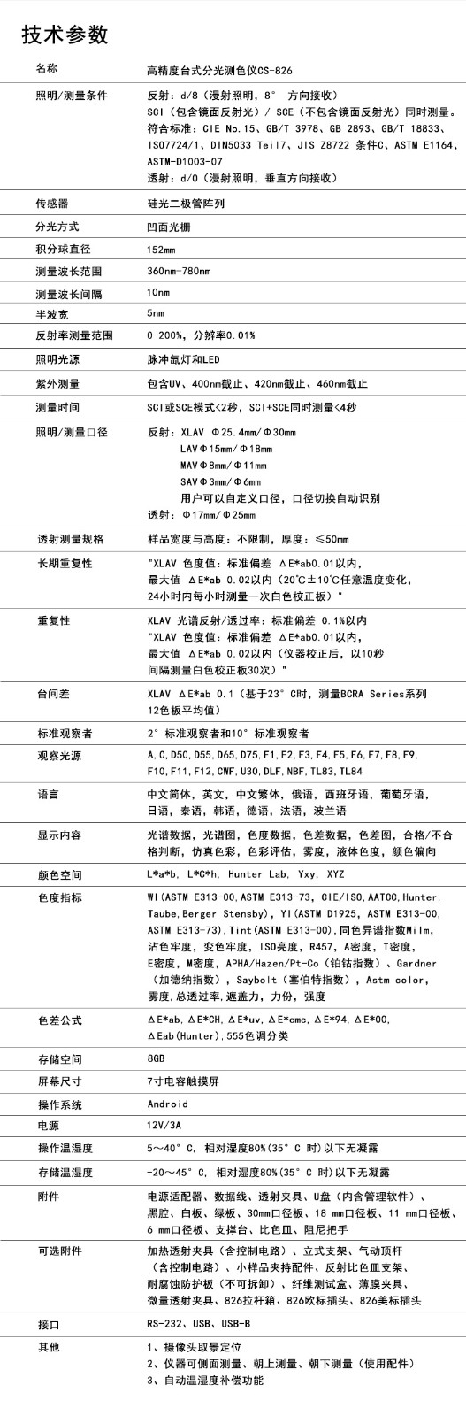 | 測量時(shí)間 | SCI或SCE模式<2秒,SCI+SCE同時(shí)測量<4秒 |