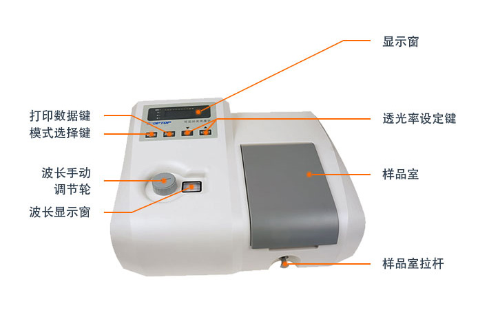 波長:335~1000nm;721:帶寬5nm;722:帶寬4nm;可選配10cm比色皿架及2、3、5、10cm 比色皿擴大測量范圍